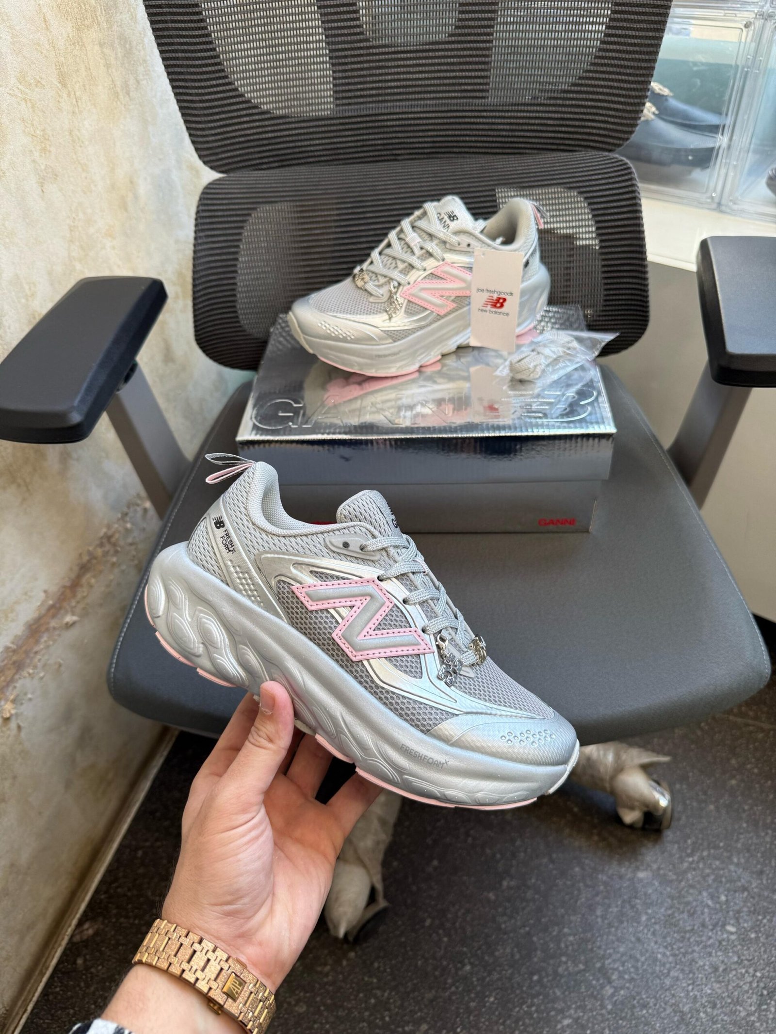 Buy first copy Ganni X New Balance Fresh Foam Gray Quill Womens Top Notch Quality. Comes With Original Box, Extra Laces.