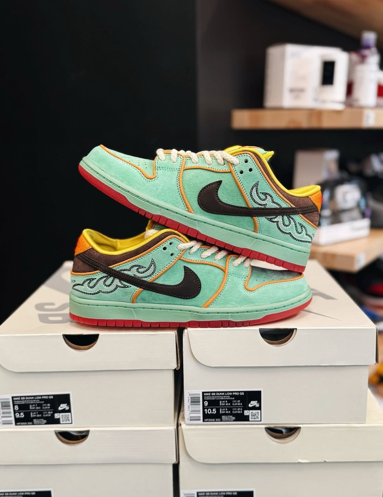 Providing Top notch Quality Nike Sb Dunk Low Rodeo Tourmaline. We Take Directly From Manufacturers, Our First Copy Pairs are Perfectly Stitched, Fully Shaped, Same Comfort As Originals. All pairs Comes with Original Branding, Original Box, Carry Bag, Covered With Original Butter paper, You can Compare side by side Quality of Our First Copy Nike Sb Dunk Low Rodeo Tourmaline with Originals. No one Can Find Single Error in Our Pairs, Material Used in our Nike Sb Dunk Low Rodeo Tourmaline are actually Same as Original. And We are the Most Trusted First Copy Shoes Seller Across India