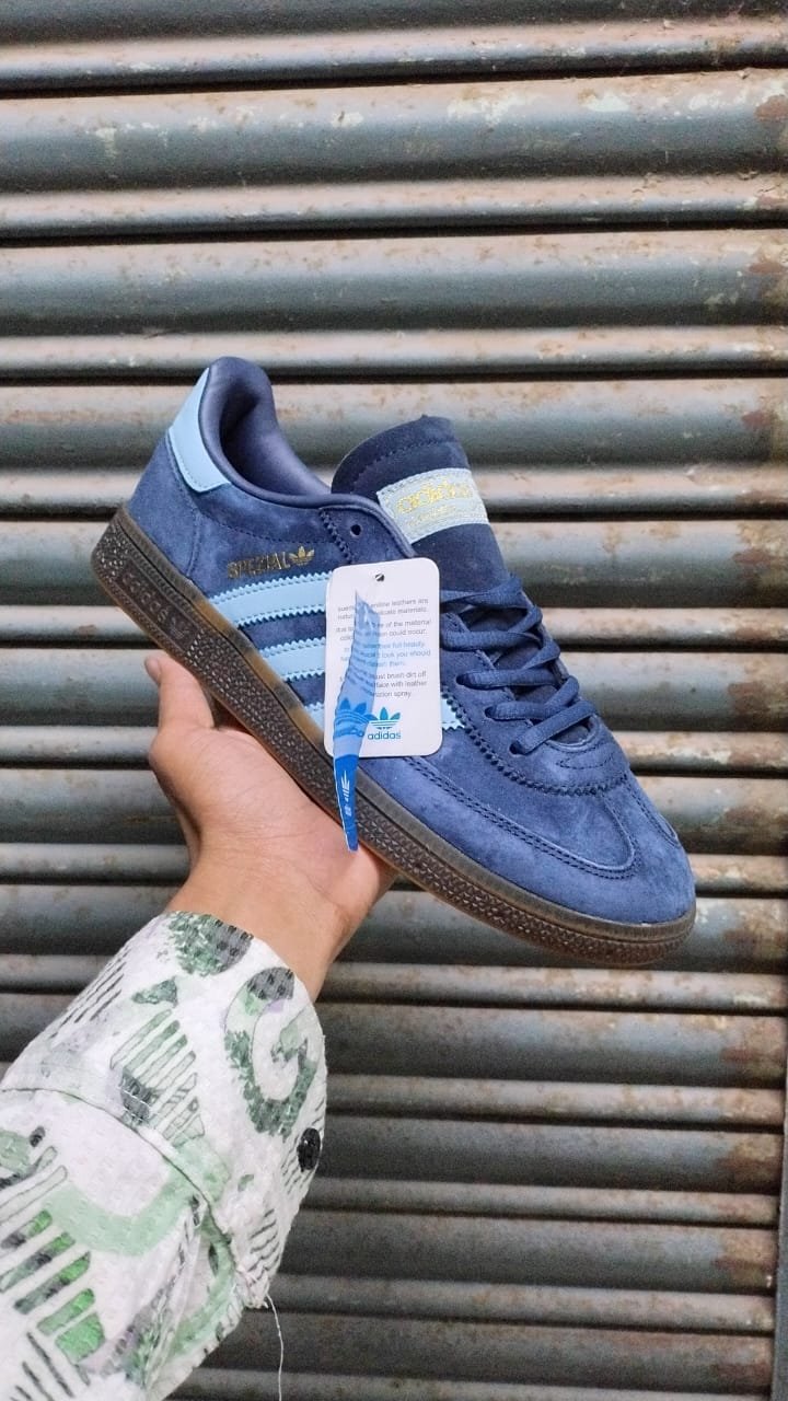 Buy our first copy Adidas Handball Spezial Navy Gum Clear Sky Blue 7AAA quality shoes. They are completely flawless in every possible aspect right from the box. It comes into the exact detailing on the shoes, the marks, logos, stitching & everything has got the very finest bit of detailing you would expect in a high-end 7A quality Sneakers.